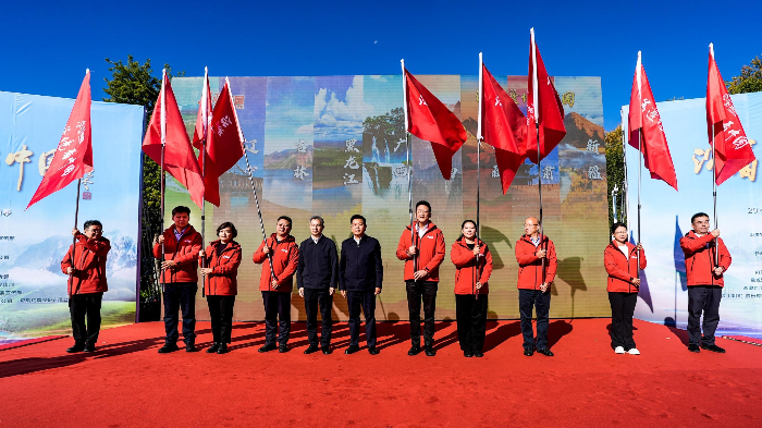 “學習強國”阿勒泰9月23日電 2024年9月23日上午,由中央宣傳部“學習強國”學習平臺主辦的《沿著邊境看中國》系列融媒體報道在新疆維吾爾自治區(qū)阿勒泰市舉辦啟動儀式。來自內(nèi)蒙古、遼寧、吉林、黑龍江、廣西、云南、西藏、甘肅、新疆等九個沿邊省、自治區(qū)以及新疆生產(chǎn)建設兵團的相關負責人參加活動。中央宣傳部副部長、國務院新聞辦公室主任莫高義發(fā)表致辭并為邊疆九個省、自治區(qū)車隊授旗,宣布《沿著邊境看中國》采訪報道團出發(fā)。新疆維吾爾自治區(qū)黨委常委、宣傳部部長王建新出席活動并致辭。