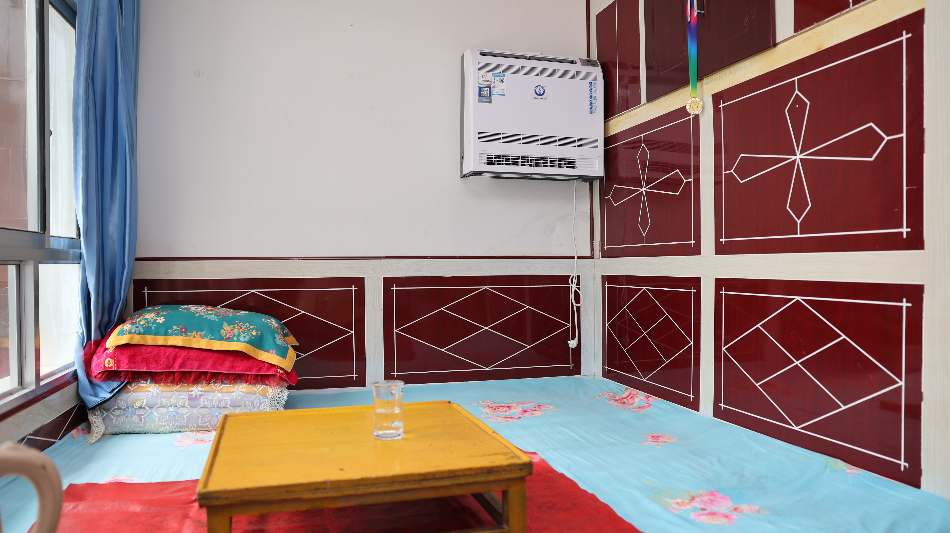陳尕萍拿起遙控板,打開(kāi)剛剛安裝好的熱風(fēng)機(jī)。一兩分鐘后,熱風(fēng)拂面而來(lái),“最近陰雨天多,夜晚氣溫最低只有2度,以后可以用熱風(fēng)機(jī)取暖了?!标愭仄紳M臉喜悅。