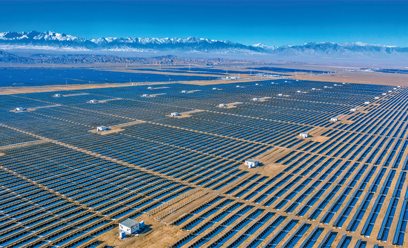 近年來,甘肅深入實施強工業(yè)行動、強科技行動,加快傳統(tǒng)產(chǎn)業(yè)改造升級,培育壯大戰(zhàn)略性新興產(chǎn)業(yè)。圖為2024年10月17日,在位于祁連山下的高臺縣高崖子灘光伏產(chǎn)業(yè)園,橫豎成行的光伏支架和光伏發(fā)電板整齊地排列著,昔日戈壁灘,如今成為綠色能源“聚寶盆”。 甘肅日報社供圖 盛學(xué)卿/攝