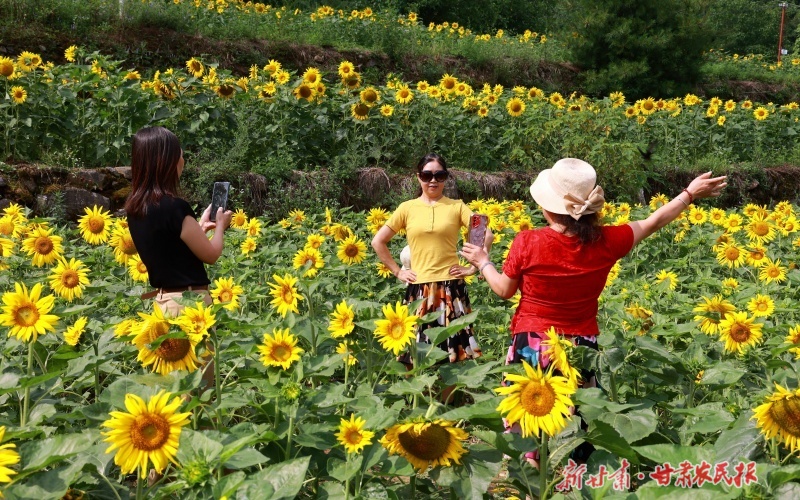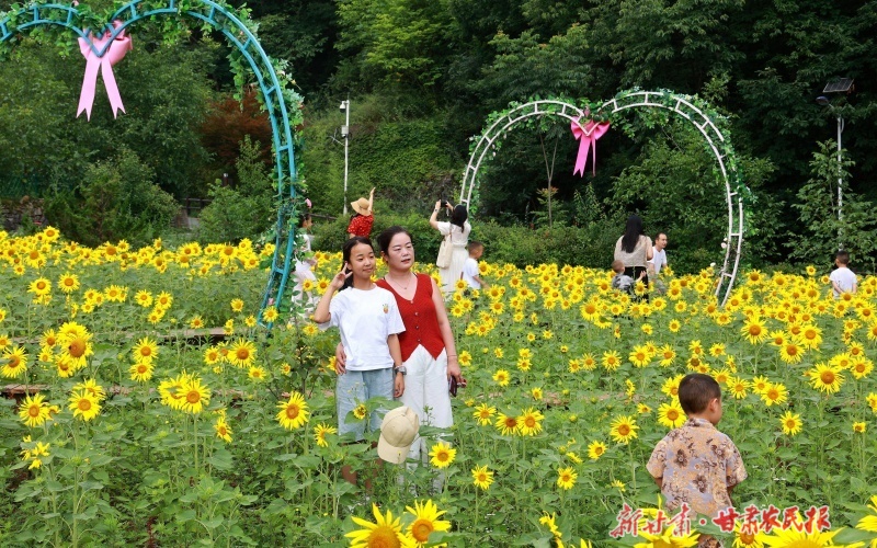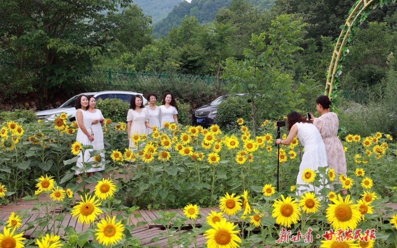 近日,康縣王壩鎮(zhèn)何家莊村村民們種植的向日葵競相綻放,吸引眾多游客前來游玩打卡。近年來,王壩鎮(zhèn)堅持農旅融合發(fā)展,大力發(fā)展生態(tài)觀光農業(yè),帶動當?shù)卮迕裨鍪罩赂唬︵l(xiāng)村振興。新甘肅·甘肅農民報通訊員 黃培軍