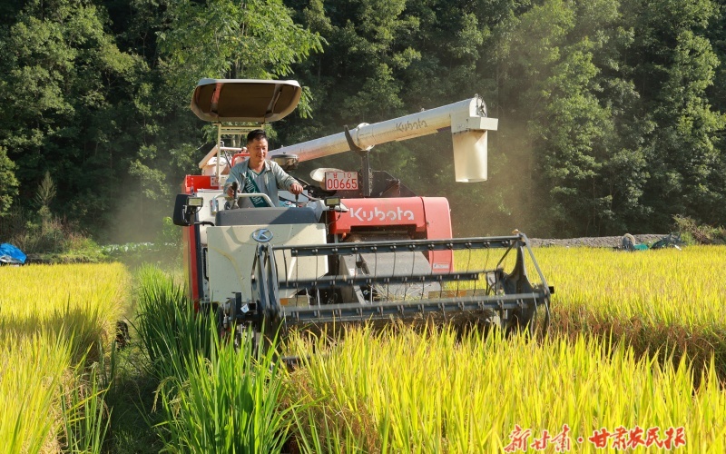 眼下,康縣大南峪、陽壩鎮(zhèn)、云臺等鄉(xiāng)鎮(zhèn)的高山水稻陸續(xù)進入成熟收獲期,田野上稻浪滾滾,農民們搶抓天氣晴好,收割、晾曬水稻,確保糧食顆粒歸倉。新甘肅·甘肅農民報通訊員 黃培軍攝