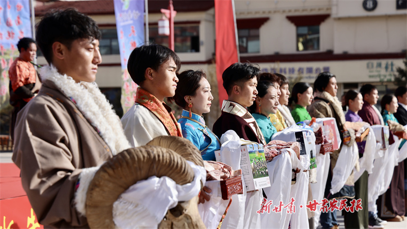 12月12日,“九色甘南香巴拉·天然臻品牦牛肉”——瑪曲縣首屆“甘南牦?!薄皻W拉藏羊”冬肉節(jié)在格薩爾廣場盛大開幕。