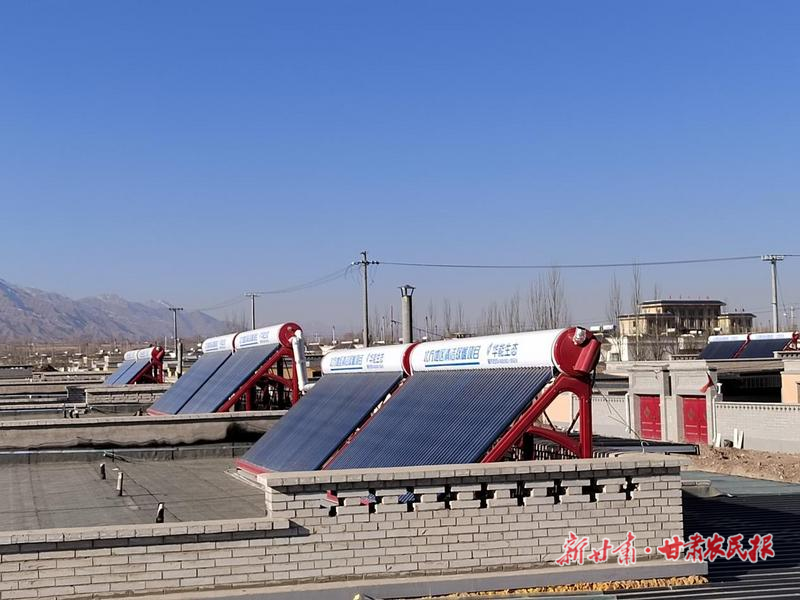 涼州區(qū)金山鎮(zhèn)搬遷戶屋頂安裝2組100支集熱管太陽(yáng)能熱水器。新甘肅·甘肅農(nóng)民報(bào)通訊員李化陽(yáng) 攝