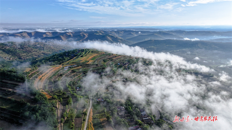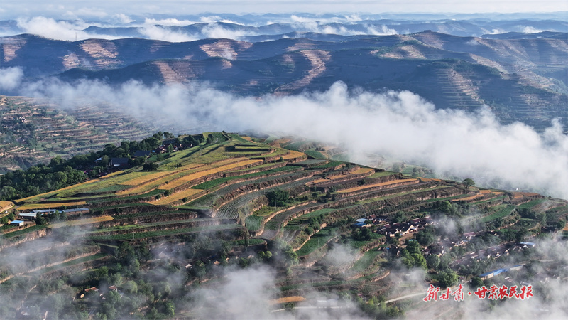 金黃的麥浪、翠綠的樹木與乳白的晨霧交織,色彩明麗而和諧,仿佛大自然精心暈染的巨幅油畫。這片梯田不僅承載著莊浪人民戰(zhàn)天斗地的精神,更在四季輪轉(zhuǎn)中展現(xiàn)著獨(dú)特的生態(tài)之美。(新甘肅·甘肅農(nóng)民報(bào)通訊員 張沛杰)