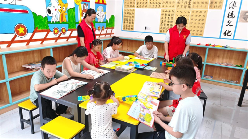“以前暑假,娃不是窩家看電視,就是野地里瘋跑。”王慧龍媽笑著說(shuō),“現(xiàn)在每天早上自己背書(shū)包去書(shū)屋,回來(lái)還給我們講書(shū)里的故事,懂事多了?!?/p>
