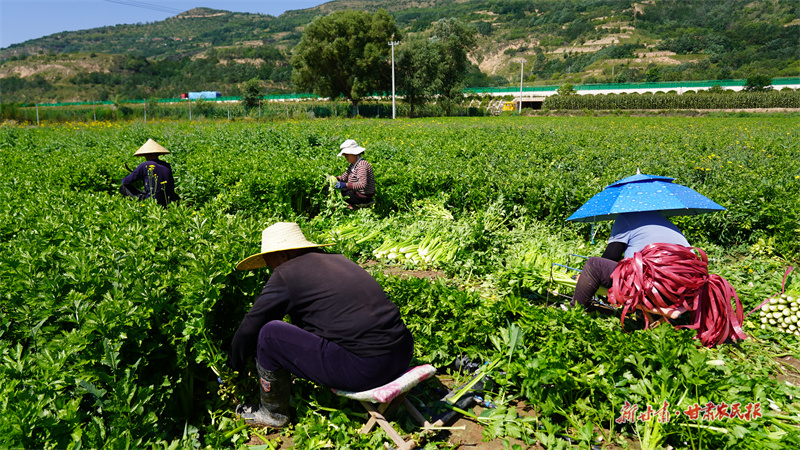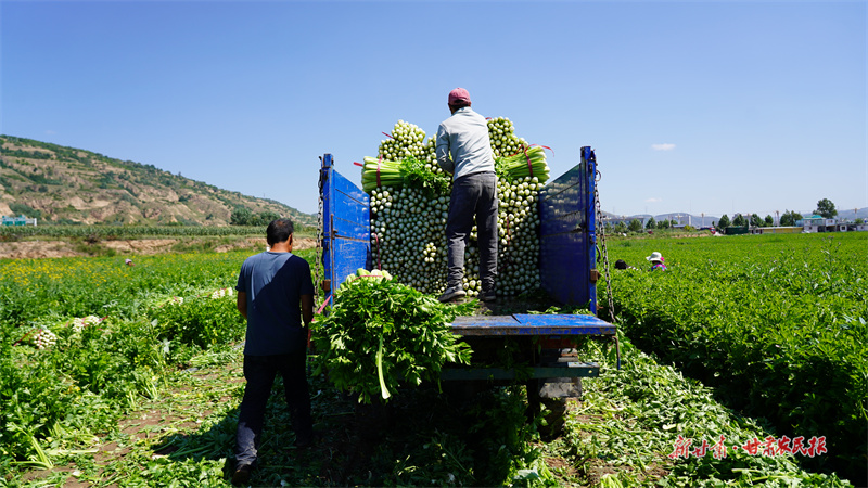 初秋時節(jié),靜寧縣迎來了蔬菜豐收季,田間地頭一派繁忙的景象。在八里鎮(zhèn)小山村的芹菜種植基地,工人們正忙著采收芹菜,去根、打捆、裝車……