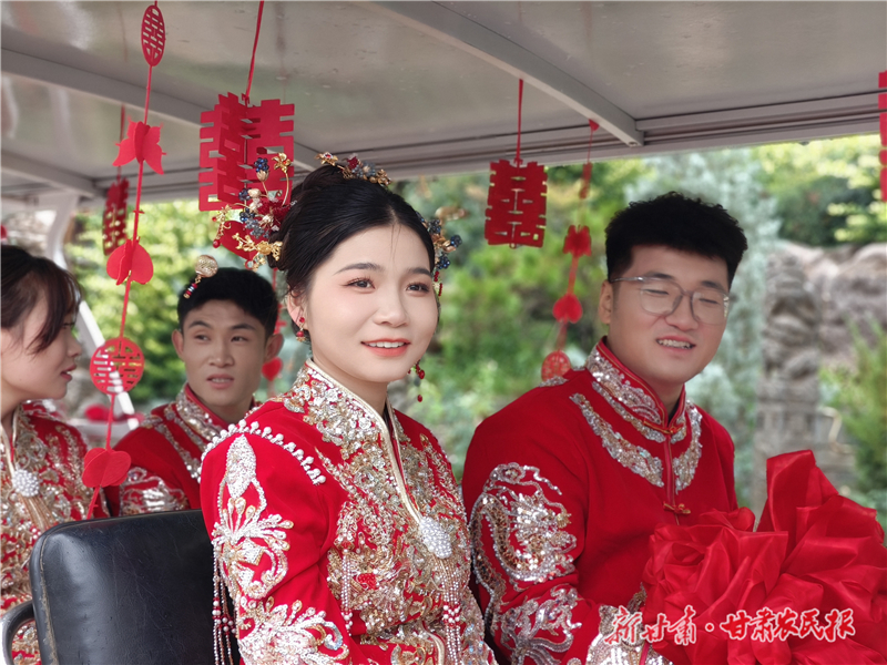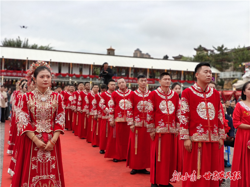 隨后,一場融合隴東文明婚俗展示的集體婚禮精彩亮相,婚禮以穿越式情景為主線,古慶州知州范仲淹“穿越”擔任主婚人,15對新人行“三拜禮”、飲合巹酒、宣讀文明誓言,省民政廳負責同志為新人頒發(fā)結婚證,與會嘉賓向新人送上“新風禮包”祝福。演出結束后,新人“掛同心鎖”“種幸福樹”、乘花車古城巡游依次展開,“一面之約”饸饹面簡餐溫情開席。