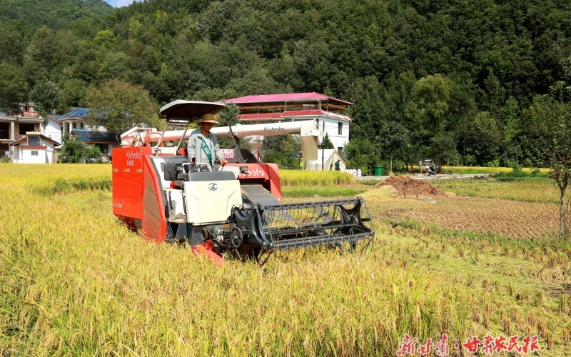 眼下,康縣大南峪、陽壩鎮(zhèn)、云臺等鄉(xiāng)鎮(zhèn)的高山水稻陸續(xù)進入成熟收獲期,田野上稻浪滾滾,農民們搶抓天氣晴好,收割、晾曬水稻,確保糧食顆粒歸倉。新甘肅·甘肅農民報通訊員 黃培軍攝