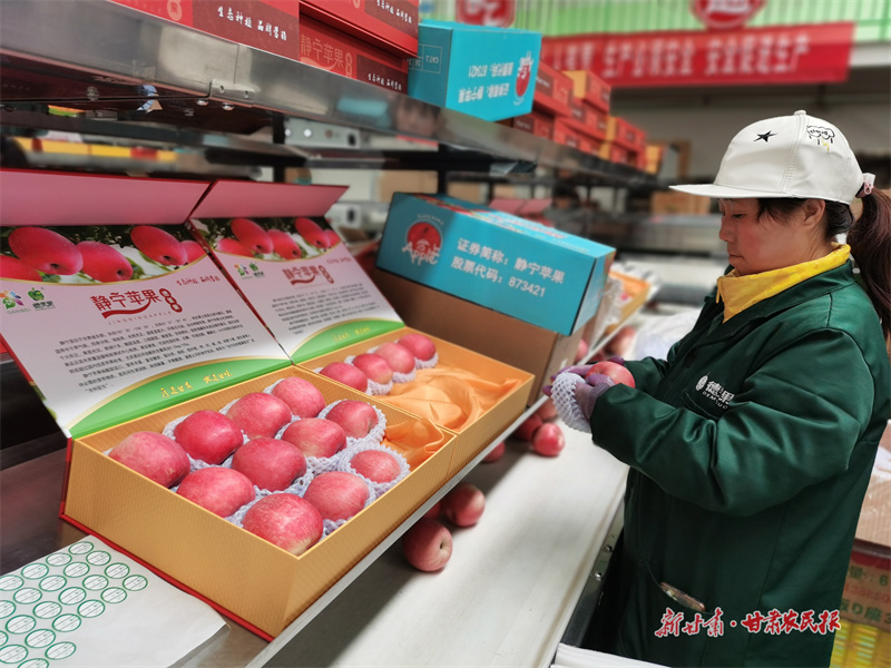 為了最大限度提升蘋果價值,靜寧縣不斷延伸產(chǎn)業(yè)鏈,推動蘋果從“論斤賣”向“論個賣”“賣產(chǎn)品”向“賣品牌”轉(zhuǎn)變。
